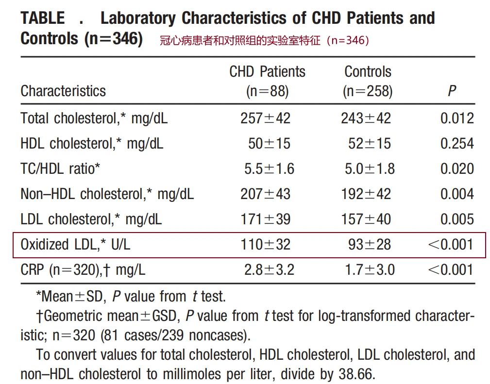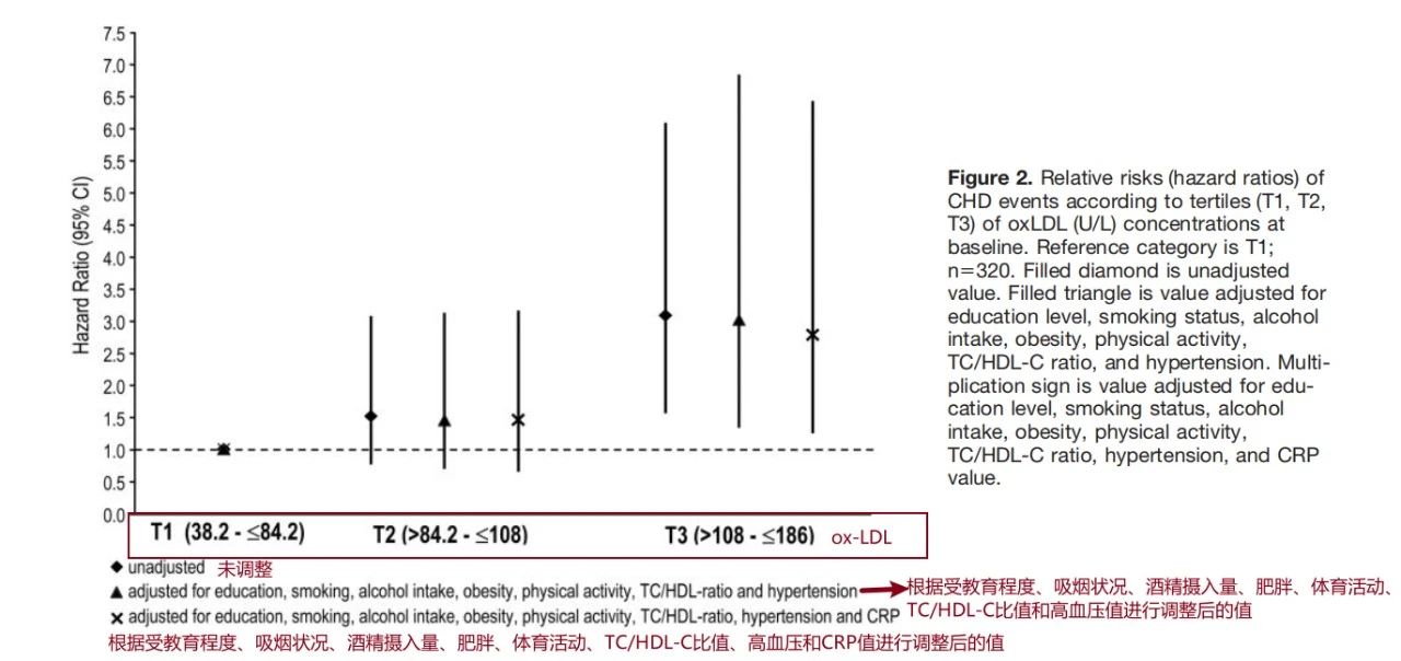 ①研究結(jié)果表明,與標(biāo)準(zhǔn)血脂變量和其他傳統(tǒng)的冠心病風(fēng)險(xiǎn)因素相比,ox-LDL是一種更強(qiáng)的風(fēng)險(xiǎn)預(yù)測(cè)因子,證明了ox-LDL與未來(lái)冠心病事件之間的密切聯(lián)系。