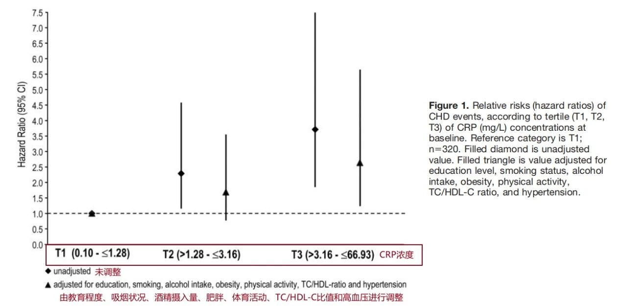 研究顯示,在同一模型中同時(shí)評(píng)估ox-LDL和CRP時(shí),即使經(jīng)過(guò)多變量調(diào)整,這兩個(gè)參數(shù)仍可預(yù)測(cè)未來(lái)的冠心病事件。與CRP相比(2.30;95%CI,1.06至5.02;P=0.036;如圖1),血漿ox-LDL的上三分層HR略高(2.79;95%CI,1.21至6.42;=0.016;如圖2)。