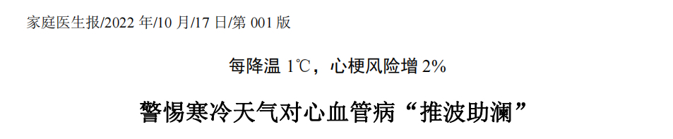 相關(guān)研究數(shù)據(jù)表明,每年的12月至次年3月是心血管病發(fā)病高峰期,發(fā)病數(shù)明顯高于其他月份,這與血脂季節(jié)性波動(dòng)的結(jié)論也相一致。研究數(shù)據(jù)顯示,氣溫每降低1℃,心血管疾病發(fā)生風(fēng)險(xiǎn)則增加 2%,因此要警惕寒冷天氣對(duì)心血管病“推波助瀾”。
